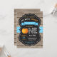 Rapaz Rustic Pumpkin Primeiro Convite de Aniversário com fundo de madeira azul e rústica. Para mais personalização, clique no botão "Personalizar" e use nossa ferramenta de design para modificar este modelo.