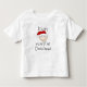 Um garoto com boné vermelho e texto no estilo de criança que diz "É meu primeiro Natal!" nas primeiras camisetas de Natal do bebê, sacos de tote e outros equipamentos de Natal!