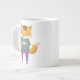 Raposa de cartoon em jeans a tomar uma xícara de chá