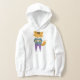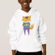 Raposa de cartoon em jeans a tomar uma xícara de chá