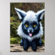 Retrato de uma linda e adorável raposa de fantasia azul e branca na floresta. Esta é uma arte gerada por IA.