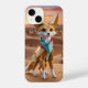 A raposa de Origami fennec, que se encontra no deserto durante um caso do iPhone 14 com o pôr do sol.