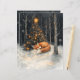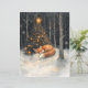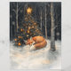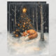 Arte em papel de scrapbook com uma adorável raposa dormindo em frente a uma árvore de Natal na floresta.