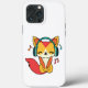 Raposa feliz com fones de ouvido ouvindo música. estilo Kawaii.
