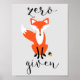 Poster engraçado e único com caligrafia moderna e ilustração de raposa. Este será um sotaque perfeito para qualquer quarto.