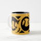 Desenhos em tinta de plantas e raposas geométricas antigas na caneca. Inspirado pelo estilo da cerâmica antiga. Arte rock.