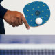 Um clássico design houndstooth em tons não-tão-clássicos de azul-cerulano cria um padrão divertido e atualizado com um sotaque final de um ouro metálico misturado para criar um design que realmente irá pop. Personalize o monograma nesta pá de pingue-pongue com a sua inicial para marcá-lo como seu.