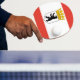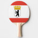 Paddle ping pong com bandeira variante de Berlim, bandeira estatal com faixas horizontais de vermelho e branco, com ilustração de um escudo dentro de urso preto com uma coroa