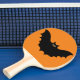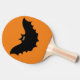 Ping Pong Paddle imprimido com a imagem do trabalho de arte do Halloween Black Bat pelo TheFabricSeal em Zazzle.com é uma ilustração fofa e simples de um morcego preto desenhando estilo de silhueta com o peekaboo peering verde khaki e os olhos laranja de abóbora olhando para amigos e presas e uma legal noite de aventura, goblins, ghouls, trick ou trata et.
