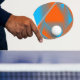 Raquete De Ping Pong Cinza Azul Laranja Ombre Arte Geométrica