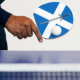 Esta design de Richard H. Fay combina uma ilustração da espada distintiva de duas mãos Highland conhecida como o claymore com o azul e branco da bandeira escocesa.