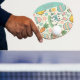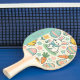 Este é um design de pingue-pongue personalizável feito de listras bege, azuis, vermelhas e amarelas.