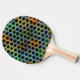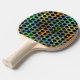 Raquete De Ping Pong Colorido vestido com bolinhas pretas.