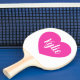 A pá pingue-pongue é mostrada com uma forma de coração cor-de-rosa com um nome de amostra, personalize este item e mude o nome de amostra para o seu com este modelo.