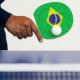 A pintura a óleo no Brasil. Canvas de desenho de emblema brasileiro. Um quadro pintado da bandeira de um país.