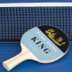 Um remo "Ping Pong King" azul empoeirado na moda com coroa dourada e nome personalizado. Um design excelente para qualquer um que seja um entusiasta do ping-ping e que ame jogar ping-pong. Um nome personalizado de luxo pingue-pongue mesa tênis.