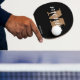 Elegant Monogram Black Gold Script Ping Pong Paddle