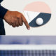 O design minimalista e moderno que representa cora bloco da cor do rosa, do branco e dos azuis marinhos.