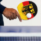 Casaco da Alemanha. A casaco de braços da Alemanha exibe uma águia negra (a "águia federal", antiga Reichsadler "Águia imperial") em um escudo amarelo (Ou, uma águia exibindo um calcanhar). Trata-se de uma reintrodução do casaco de armas da República do Weimar (utilizado em 1919-1935), adotado pela República Federal da Alemanha em 1950. A atual design oficial deve-se a Tobias Schwab (1887-1967) e foi introduzida em 1928.
