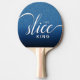 Se sua curva destemida ganhar pontos para você no pingue-pongue, então esta pá tênis de mesa, que apresenta o "título real" de "O Rei Fatia" (uma pequena jogada de palavras em "O Rei Gelo") renderizada em um guião fluente contra um fundo azul, é perfeito para você! Design © W.H. Sim. Mais informações em zazzle.com/wordsofwhimsy