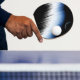 Abstrato Blue e White Spectrum sobre Lua e estrelas fundo preto.