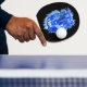 trabalho de arte de aquarela tradicional de um leão macho em cores azuis surreais em um pântano pingue-pongue