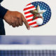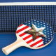 Esta pá patriótica do pong do sibilo que caracteriza a bandeira americana com uma grande estrela de prata no meio seria faz um presente perfeito em 4o julho!