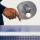 Consistindo de pontas nítidas em picos metálicos, essa misteriosa estrutura de ficção científica no mar também tem uma esfera azul refletiva.