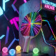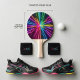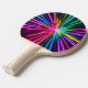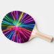 Ilumine a mesa com essa raquete de pingue-pongue explosiva em neon! Uma explosão deslumbrante de raios de luz neon vibrantes em rosa, roxo, azul, verde, amarelo e laranja irradia do centro contra um fundo escuro profundo — pura energia psicodélica que parece brilhar sob luz negra.