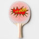 Explosão Wham. Explosão com marca de explicação. Mostrando a explosão abstrato vermelha com a borda amarela. Texto branco ligeiramente inclinado e escrito no estilo de desenho animado. Como fundo, um radial de 30 raios nas cores vermelho a azul e terminando com uma opacidade zero.