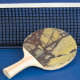 Esta pá de pingue-pongue apresenta uma foto de uma bela gemstone em cores vermelha e amarela. Este padrão marmoreado apresenta linhas de abstrato à medida que as cores se misturam através deste mineral.