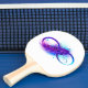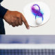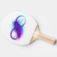 Símbolo do infinito com uma bela pena pintada em cores vibrantes roxo e azul sobre um fundo branco.