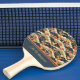 Raquete De Ping Pong Japanese Style Retro Teal Floral and Clouds Print
