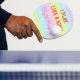 Uma pá listrada pastel engraçada do pong do sibilo que me diga "joga como uma menina, tentativa para prosseguir"