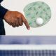 Ilustração de lagarto verde com decoração em forma de círculo sobre fundo de turquesa