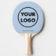 Dê a seus clientes ou funcionários uma troca divertida com pás de pingue-pongue de marca com logotipo e site da sua empresa ou slogan em um fundo azul claro para aumentar o alcance do marketing comercial. Substitua o logotipo de exemplo e o texto por seu na barra lateral. Para mostrar a cor de fundo através do seu logotipo, carregue uma versão com um fundo transparente. A parte traseira do remo é preta para uma aparência profissional, mas pode ser alterada para vermelha na barra lateral. Veja mais itens aos quais você pode adicionar seu logotipo na coleção Rocklawn Arts.