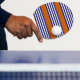 Raquete De Ping Pong Marinho, listras brancas e azuis com laranja queim