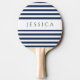 Raquete De Ping Pong Marinho Moderno Blue Striped Custom Name