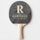 Raquete De Ping Pong Modern Dark Granite Stone Family Name & Initial