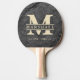 Raquete De Ping Pong Modern Dark Granite Stone Monogram & Name Overlay