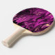 Ping pong paddle com cores de tendência e design. Cores femininas e femininas. Gótico Dramático inspirou tons de cor roxa, rosa e preta em ondas e espirros fazer um padrão abstrato moderno. Personalize com seu nome na frente, letras amarelas claras.