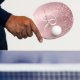 Personalize facilmente este design pingpong chic pingpong moderno com brilho bonito rosado rosado e cintilante em um fundo metálico rosado e escovado.