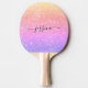 Pá de pingue-pongue moderno com um fundo cinza, cintilante arco-íris e um script com letra de mão. Personalize com seu nome.