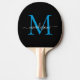 Raquete De Ping Pong Nome do Script Elegante do Monograma Azul Preto Mo