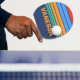 Raquete De Ping Pong Old School Retro Rainbow Horizon Stripe with Name