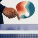 Ilustração de padrão geométrico com listras vermelhas, laranja, azuis e turquesas