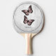 Desfrute de um jogo de pingue-pongue com uma pá com uma pá de pino personalizada com borboleta rosa. Design de remate apresenta um par de borboletas vibrantes que repousam sobre uma vinha floral branca contra um fundo de cinza claro. Itens de presentes adicionais disponíveis com este design, bem como uma variedade de cores.