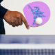 Pegasus bonito, o cavalo voado, é máscaras de roda do azul em uma pá violeta macia. Mostre ao seu opponant que você pode fazer que mosca da bola como Pegasus!