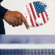 Ping pong mostrado com um patriótico impressão da bandeira dos EUA. Personalize este item ou comprar como está.