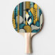 Raquete De Ping Pong Pinguim Azul-Teal Amarelo-Mostarda Em Geometria Re